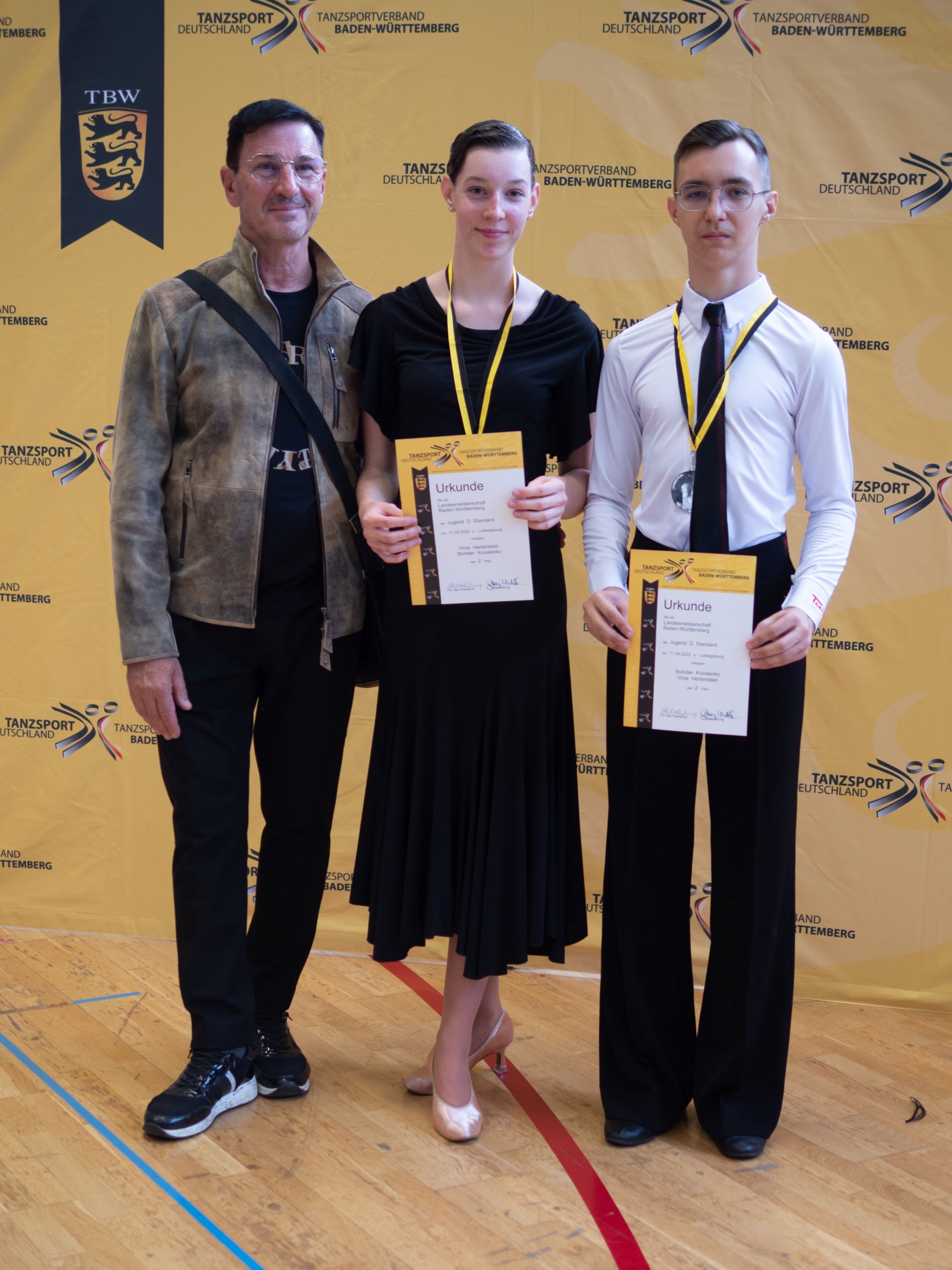 Neue Landesmeister und Goldmedaillengewinner Bohdan Kovalenko & Tarja Faber (r) in Jugend D-Standard, Aufstieg in die C-Klasse, Bronzemedaille in LM C-Klasse.