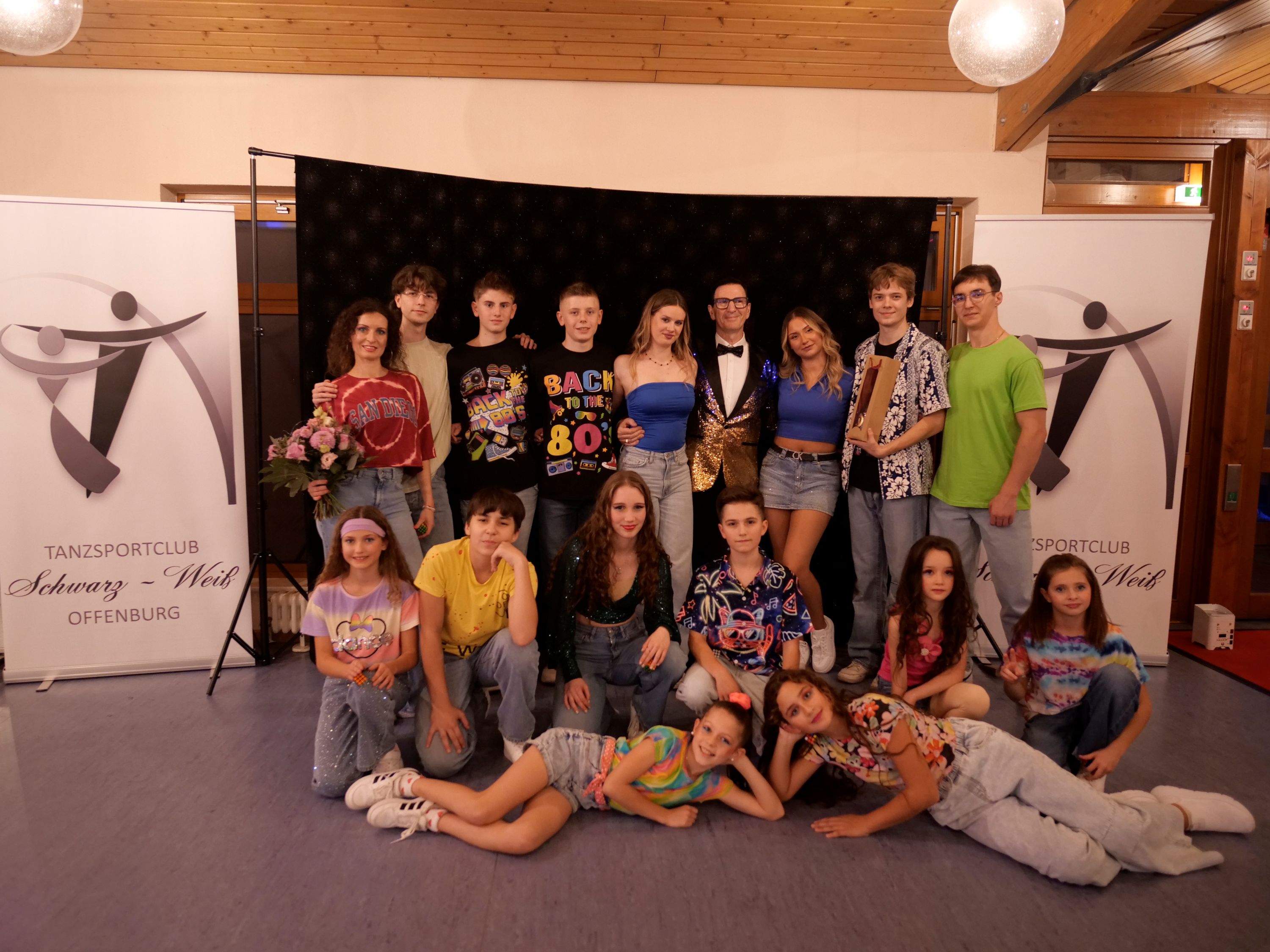 Mit 12 Startfeldern und etwa 55 teilnehmenden Tanzpaaren konnte der Tanzsportclub Schwarz-Weiß Offenburg am 1. Adventswochenende das vierte und letzte Treffen der TBW Nachwuchstrophy 2024 starten. Durch die Grenznähe zu Frankreich und der Schweiz waren auch Tanzpaare aus diesen beiden Ländern angereist, um sich mit den Tanzpaaren aus Deutschland zu messen. Der Tanzsportclub war dieses Jahr mit einem Tanzpaar vertreten, Eduard Ott und Mireille Kraft, die sich in ihrer Klasse Junioren II C Standard den 1. Platz erkämpften. Neben den Siegerehrungen würdigte der TBW auf der Veranstaltung zum ersten Mal Tanzpaare, die beides, Standard und Lateinamerikanische Tänze auf ihrem tänzerischen Programm hatten, und verspricht sich davon eine Förderung bei der Jugend nicht nur bei den lateinamerikanischen- sondern auch bei den weniger bevorzugten Standardtänzen.